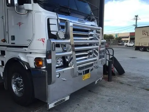 Built for demanding highway and road‑train operations, the AJ’s Fraudster Series 1 & 2 Bullbar delivers uncompromising front‑end protection and aggressive styling for your Argosy. Its FUPS‑compatible heavy‑duty design withstands wildlife strikes, debris and long‑haul conditions — while optional recessed LED light bars and custom finishes give your rig the edge. Proudly Australian‑made and built to perform.