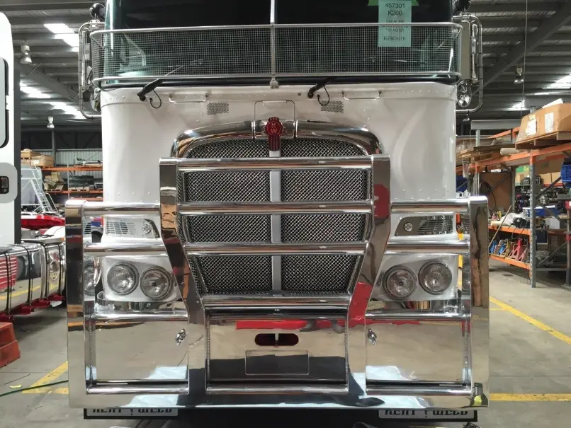 Powerful, rugged, and built to go the distance, the AJ’s Bruizer Series 2 Bullbar delivers next-level strength and protection for Australia’s toughest transport conditions. Designed for serious heavy-duty and long-haul applications, the Series 2 provides maximum front-end defence while amplifying the bold, commanding look of your Kenworth K200. Proudly Australian-made from premium steel and alloy, the Bruizer Series 2 Bullbar can be customised with recessed LED light bars and tailored finishes to suit your setup. Tough, dependable, and engineered to perform — the Bruizer Series 2 Bullbar keeps your truck protected and ready for whatever the road throws its way.