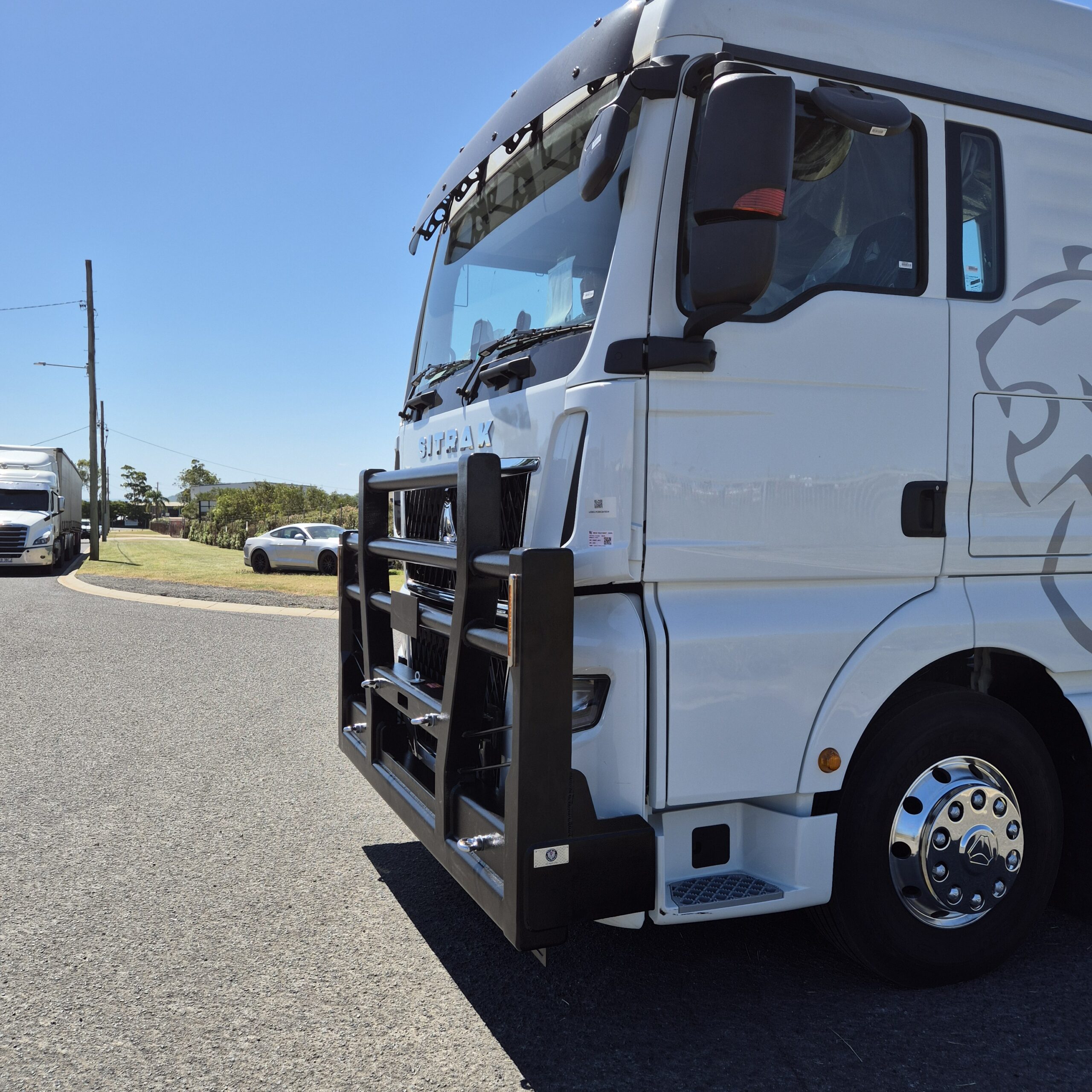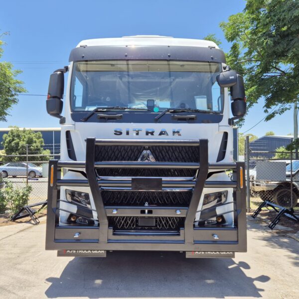 Built tough for harsh Australian conditions, the Sitrak C9H Heavy Duty Bullbar delivers serious front-end protection with a clean, aggressive look. Heavy-duty steel construction and integrated mounting options make it ready for wildlife strikes, rough terrain and long hauls — a no-nonsense upgrade built to work as hard as your truck.