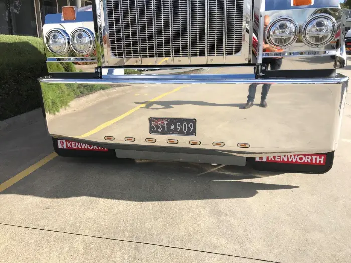 Built with bold style and rugged functionality in mind, the Cowboy Bumper for the Kenworth T900 blends heritage looks with modern toughness. Featuring heavy-duty marine-grade alloy construction and a steel mounting box (colour matched on request), this bumper comes complete with mud-flap provisions, optional bottom strip and integrated LED lighting options. With a recessed number plate and fixed tow pin built in, it’s proudly Australian-made and ready to protect your rig on both highways and outback hauls.
