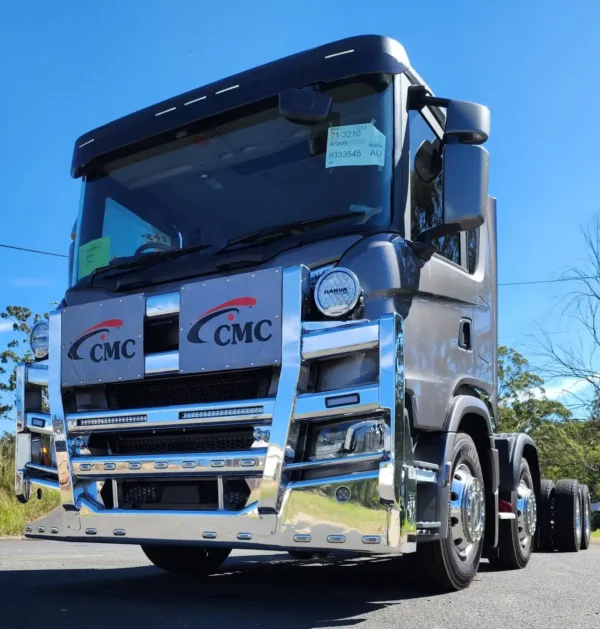 The AJ’s Total Truck Gear Scania Next Gen Extra Hi-Top Bullbar is built for superior protection and a commanding presence. Designed for Scania Next Gen Metro models, it offers heavy-duty strength while maintaining a sleek, extra high-profile design ideal for urban and regional driving. Australian-made for durability in tough conditions, the Extra Hi-Top Bullbar provides drivers with reliable protection and a bold, professional look on every journey.