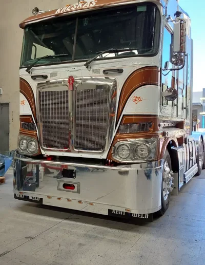Powerful, commanding, and built for the toughest conditions, the AJ’s Fatboy Bumper for the Kenworth K220 sets a new benchmark for strength, style, and performance. Engineered for serious heavy-duty and long-haul applications, it delivers unmatched front-end protection while complementing the bold, modern design of the K220. Proudly Australian-made from premium steel and alloy, the Fatboy Bumper can be customised with recessed LED light bars and tailored finishes to perfectly suit your setup. Durable, dependable, and built to go the distance — the K220 Fatboy Bumper keeps your truck protected, looking sharp, and ready for anything the road throws its way.