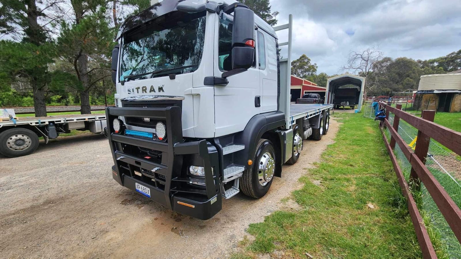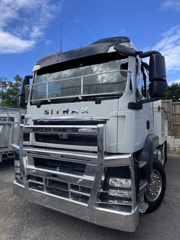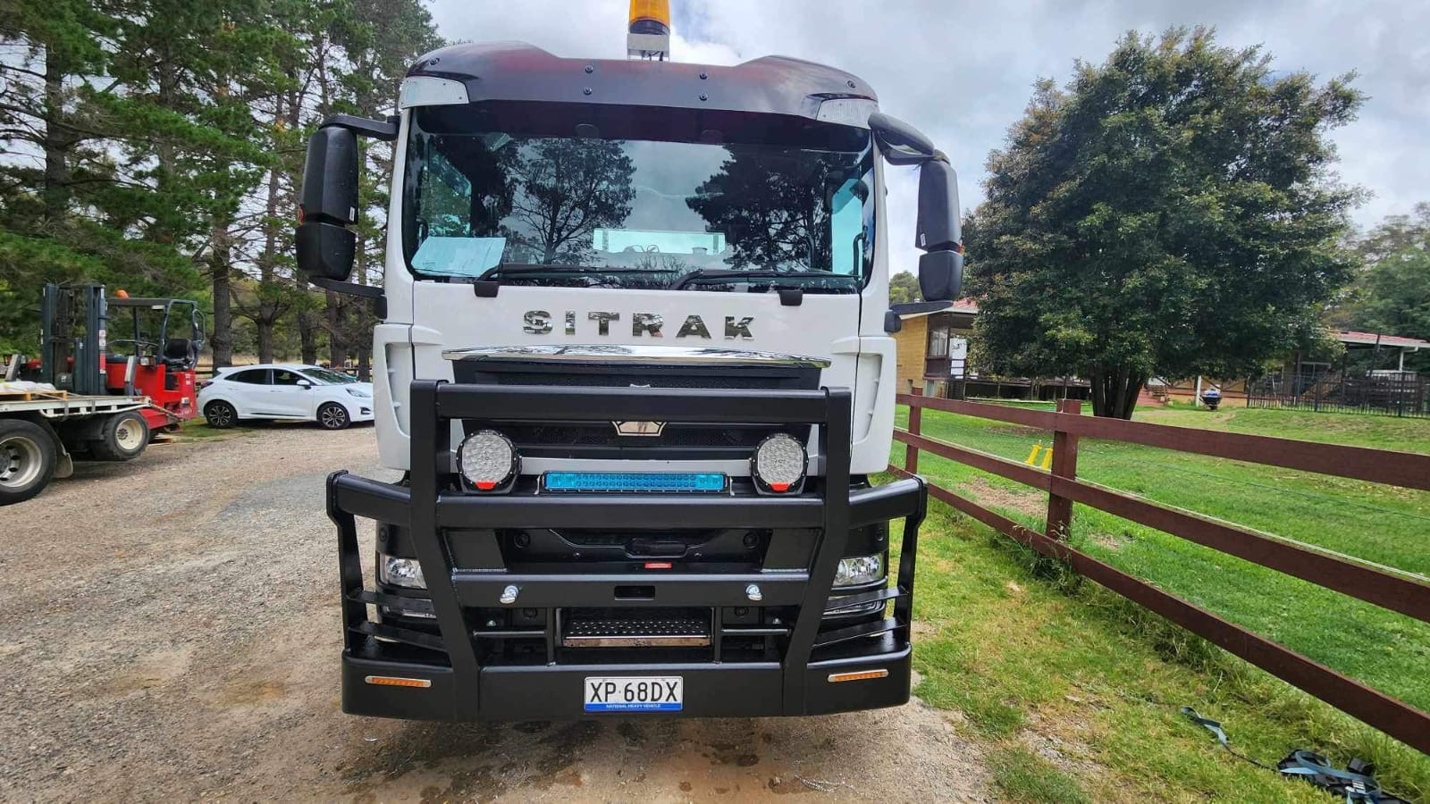 Built tough for harsh Australian conditions, the Sitrak G7S/C7H Tipper Hi-Top Bullbar delivers serious front-end protection with a clean, aggressive look. Heavy-duty steel construction and integrated mounting options make it ready for wildlife strikes, rough terrain and long hauls — a no-nonsense upgrade built to work as hard as your truck.