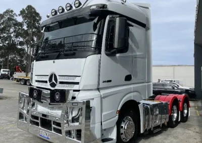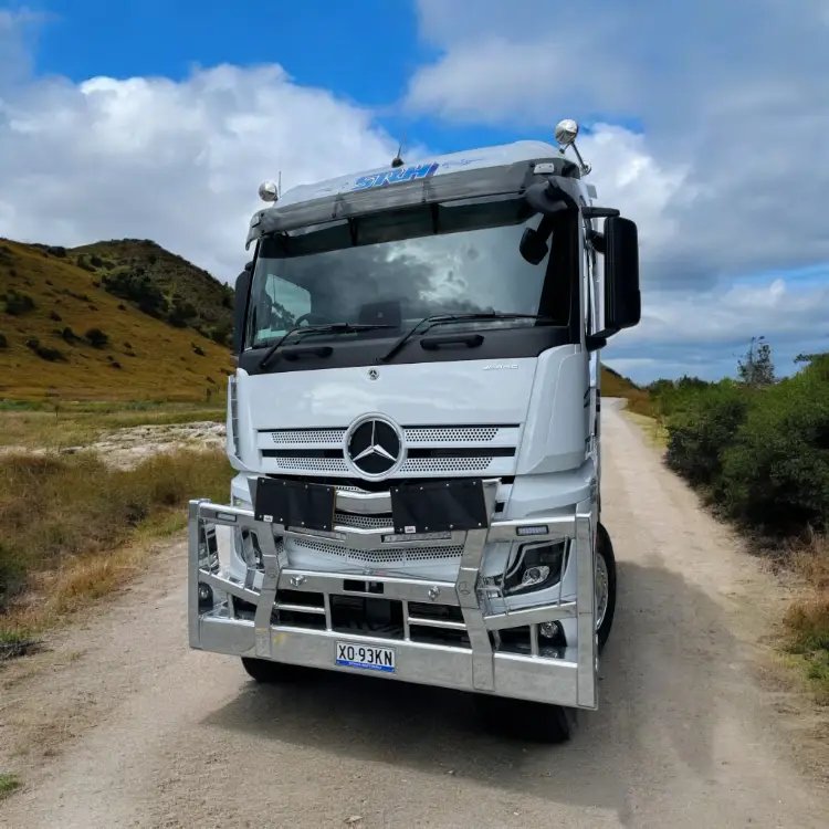 Engineered for performance and built to last, the AJ’s Garner Bullbar delivers the perfect balance of strength, style, and protection for Australia’s harsh transport conditions. With its heavy-duty FUPS-compatible four-post design, the Garner offers exceptional front-end protection while maintaining a clean, professional finish. Proudly Australian-made from high-grade steel and alloy, it can be customised with recessed LED light bars and tailored finishes to suit your truck and fleet. Tough, dependable, and built for the long haul — the Garner Bullbar keeps your rig looking sharp and ready for work.