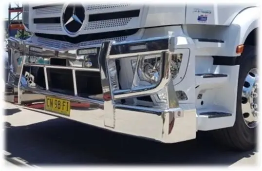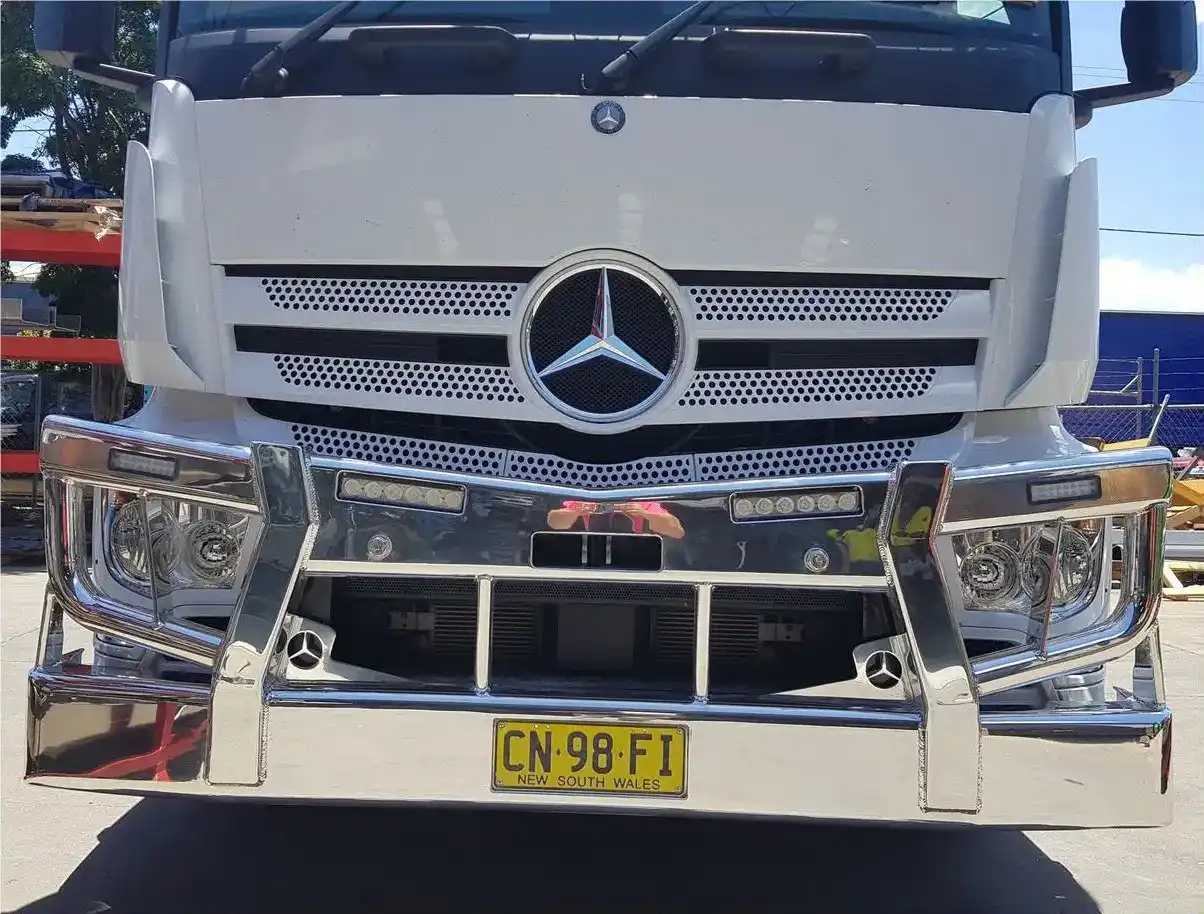Built to handle the hard yards, the AJ’s Rebel Low Top Bullbar delivers serious strength, style, and reliability for Australia’s toughest transport environments. Its low-profile, FUPS-compatible four-post design provides maximum protection without sacrificing visibility or aerodynamics. Crafted right here in Australia from premium steel and alloy, the Rebel Low Top is available with recessed LED light bars and custom finishes to suit your truck’s look. Tough, practical, and built to perform — the Rebel Low Top Bullbar keeps your rig protected and ready for the long haul.