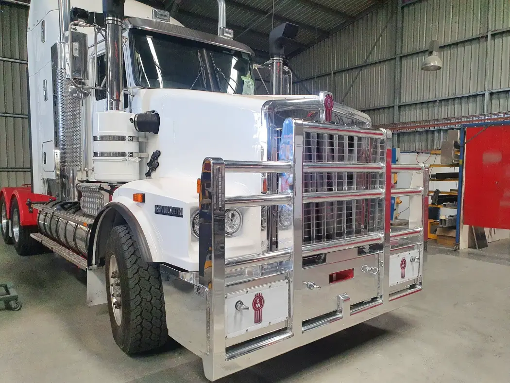 Built for serious front‑end defence and bold aesthetic, the Redmond Bullbar for the Kenworth T650 combines rugged Australian engineering with sharp design. Crafted to withstand wildlife strikes and rough terrain, it’s built from high‑quality materials and integrates recessed light‑bar options and clean mounting. Proudly Australian‑made and ready for the long haul.