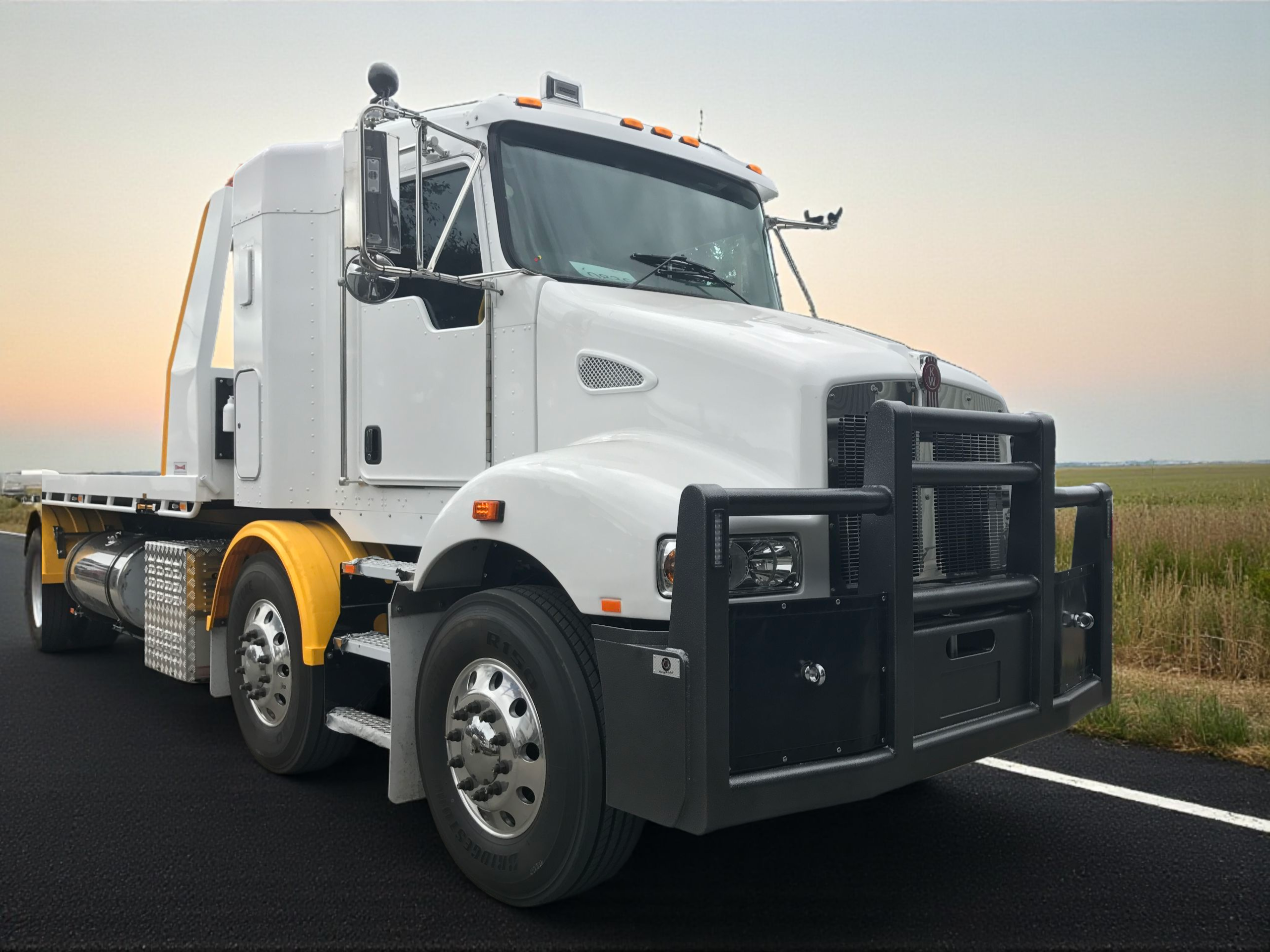 Powerful, bold, and built to perform, the AJ’s Bullbar for the Kenworth T360 delivers exceptional strength, durability, and style for Australia’s toughest transport conditions. Designed for heavy-duty and long-haul applications, it provides superior front-end protection while enhancing the T360’s commanding, road-ready presence. Proudly Australian-made from premium steel and alloy, the T360 Bullbar can be customised with recessed LED light bars and tailored finishes to suit your setup. Tough, dependable, and built to go the distance — the Kenworth T360 Bullbar keeps your truck protected, looking sharp, and ready for any challenge.