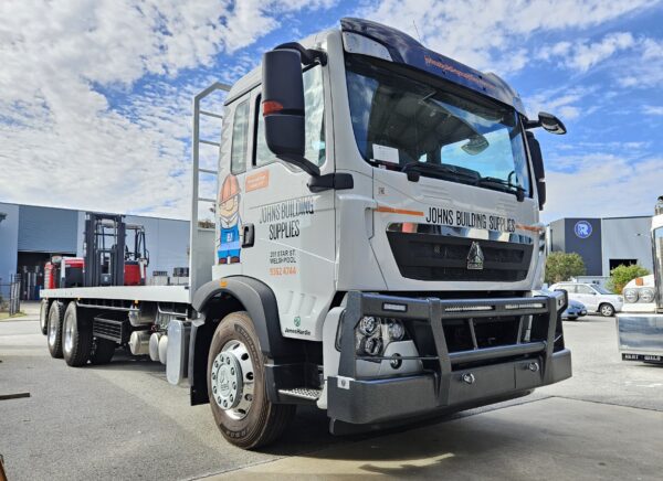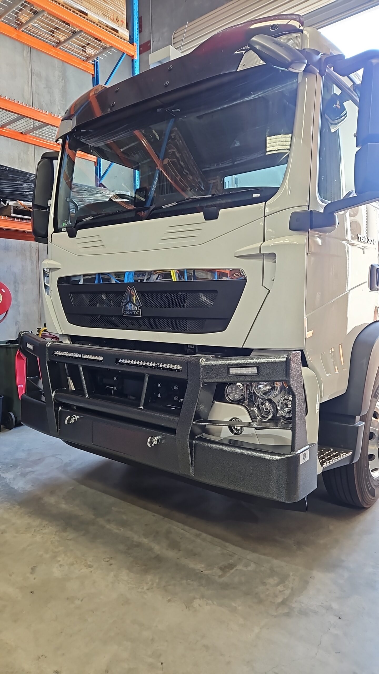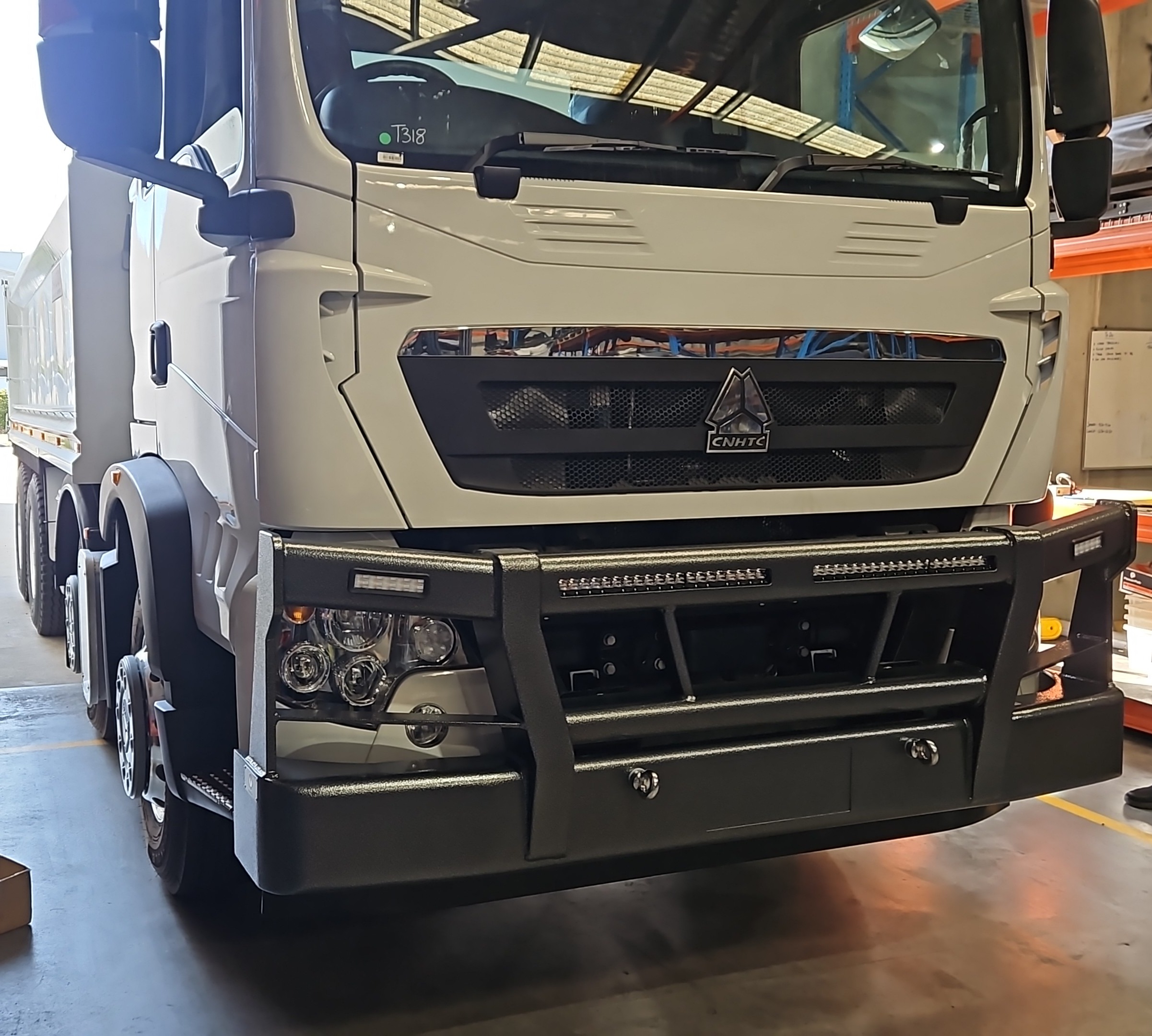 Built tough for harsh Australian conditions, the Sitrak T5G Low-Top Bullbar delivers serious front-end protection with a clean, aggressive look. Heavy-duty steel construction and integrated mounting options make it ready for wildlife strikes, rough terrain and long hauls — a no-nonsense upgrade built to work as hard as your truck.
