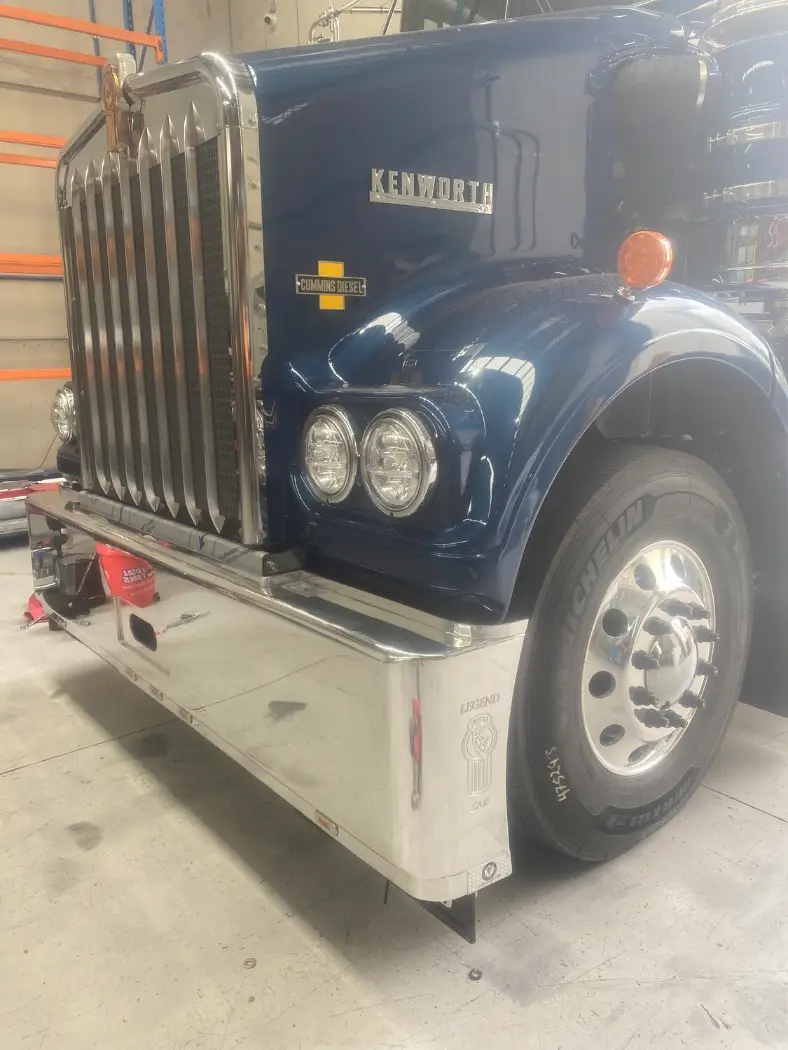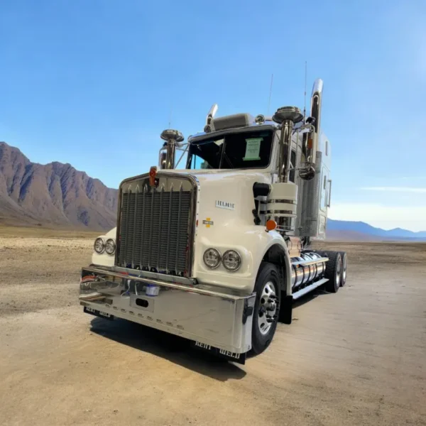 Built as a made‑to‑order Texan style bumper, this unit brings rugged style and strong protection to your W900. Finished in high‑polish alloy and matched with heavy‑duty mounting, it features recessed marker lights, a recessed number plate over a tow box, and offers extras like mud‑flaps, routed “LEGEND / K / W” badging, bottom strips and twin LED light‑bars.
