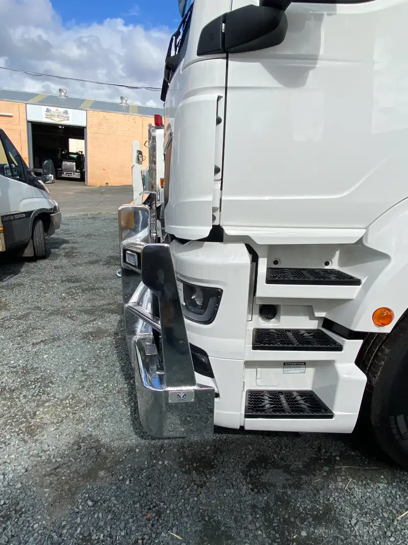 Tough, dependable, and built for Australia’s demanding roads, the AJ’s MAN TG3s Bullbar delivers exceptional protection and durability. Featuring a robust tubular design, it provides strong front-end defence while complementing the TG3s’ modern, professional appearance. Proudly Australian-made from premium steel and alloy, the TG3s Bullbar can be customised with recessed LED light bars and high-quality finishes to suit your fleet. Built to last and designed to perform — the MAN TG3s Bullbar keeps your truck protected and ready for any challenge.
