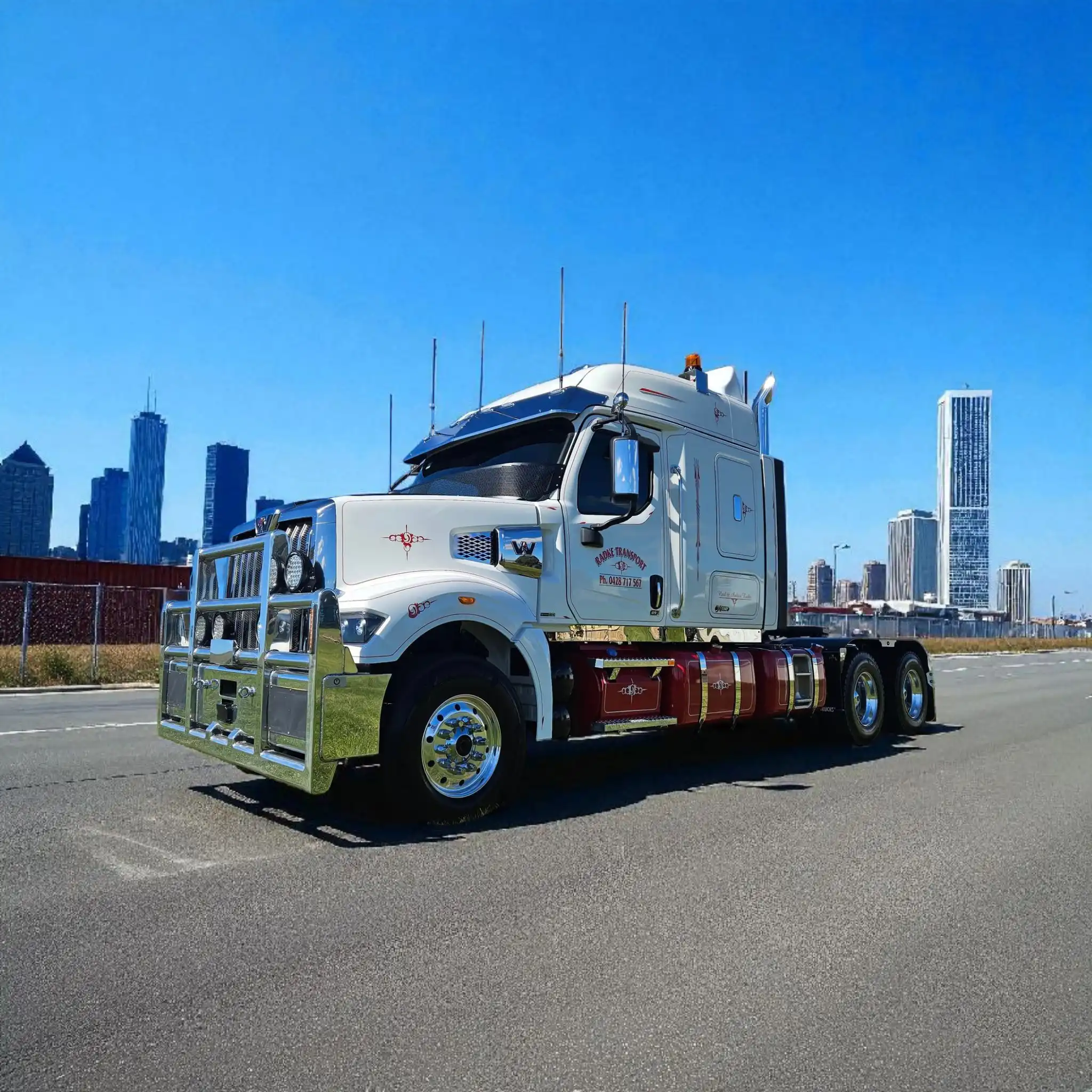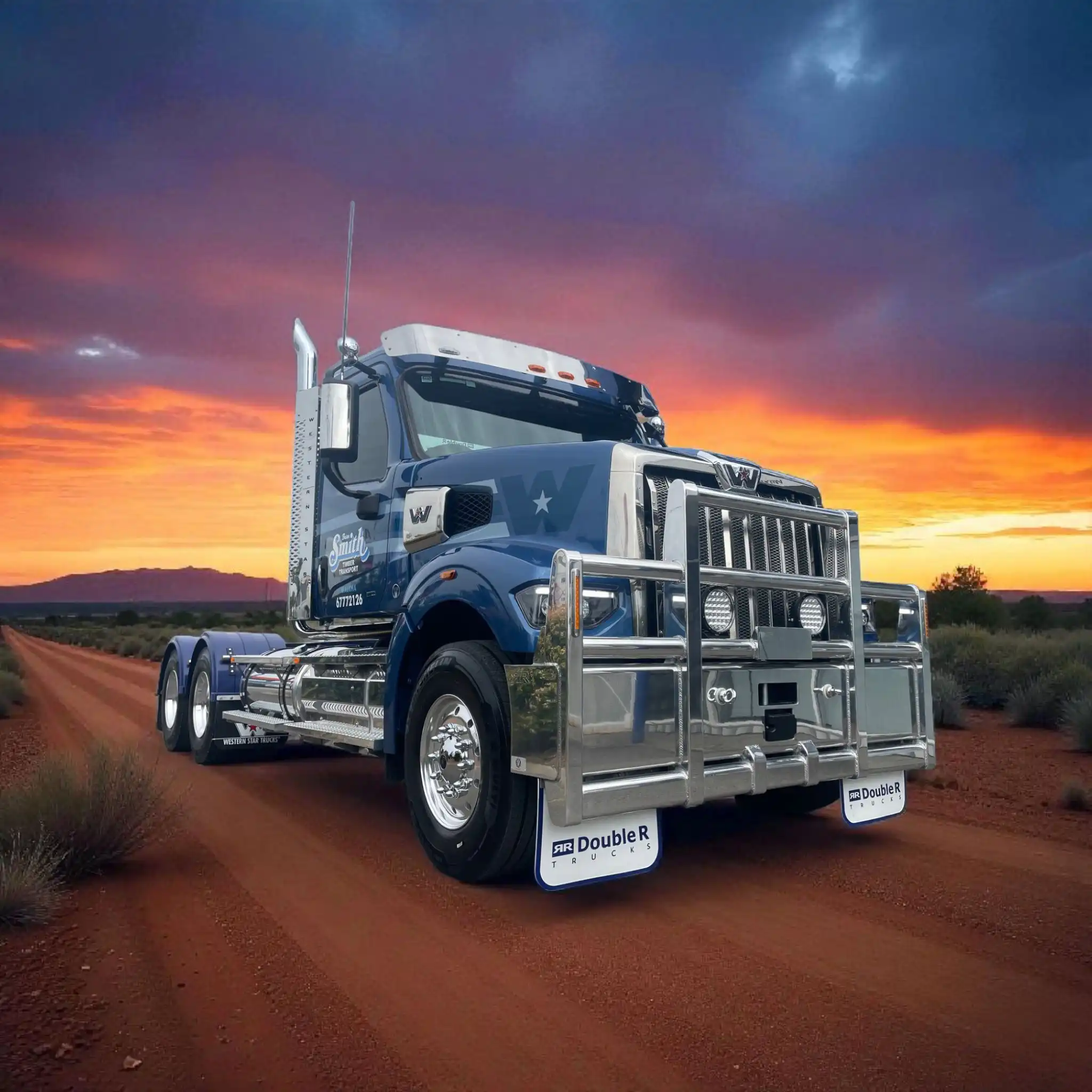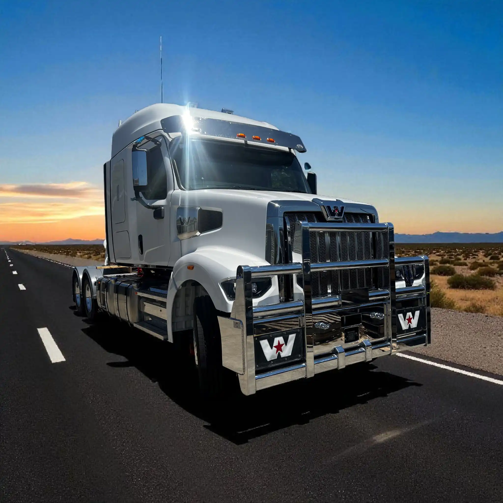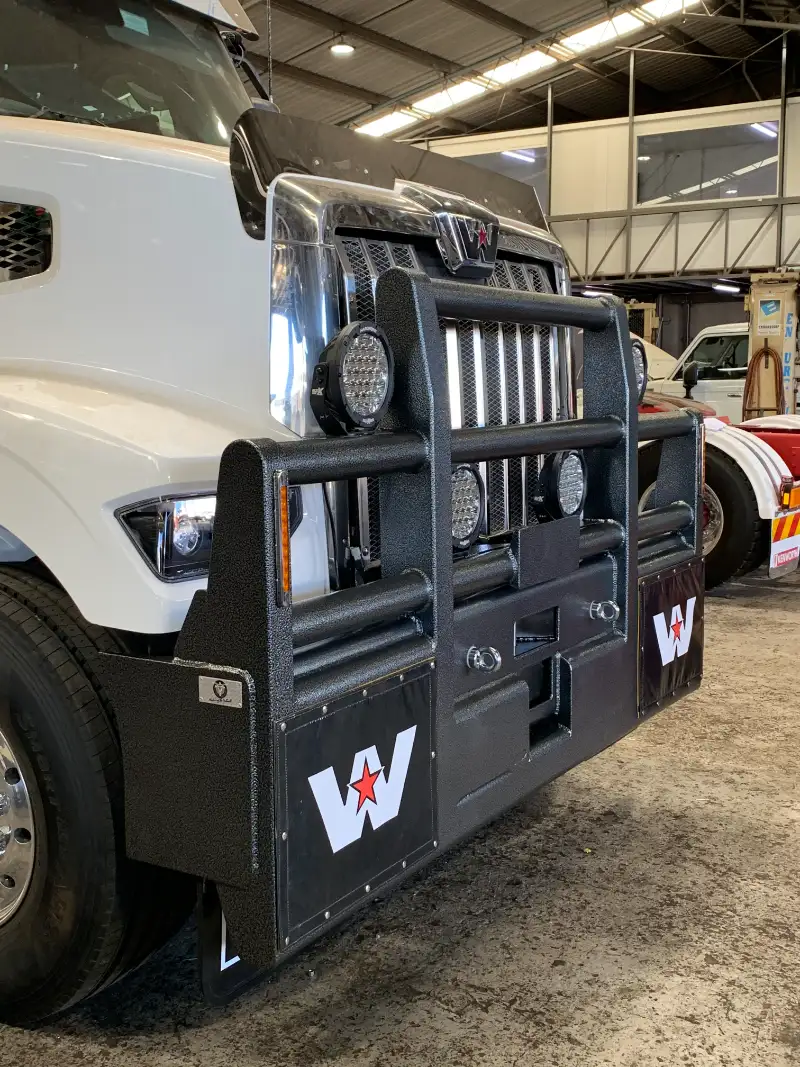 Powerful, bold, and built for serious work, the AJ’s Western Star Warlock Road Train Bullbar delivers unmatched strength and protection for Australia’s toughest conditions. Designed specifically for heavy-duty and road train applications, the Warlock offers exceptional front-end defence while complementing Western Star’s commanding presence on the road. Proudly Australian-made from premium heavy-duty steel and alloy, it can be customised with recessed LED light bars and tailored finishes to suit your setup. Tough, reliable, and made to perform — the Warlock Road Train Bullbar keeps your Western Star protected and ready for whatever the outback throws its way.