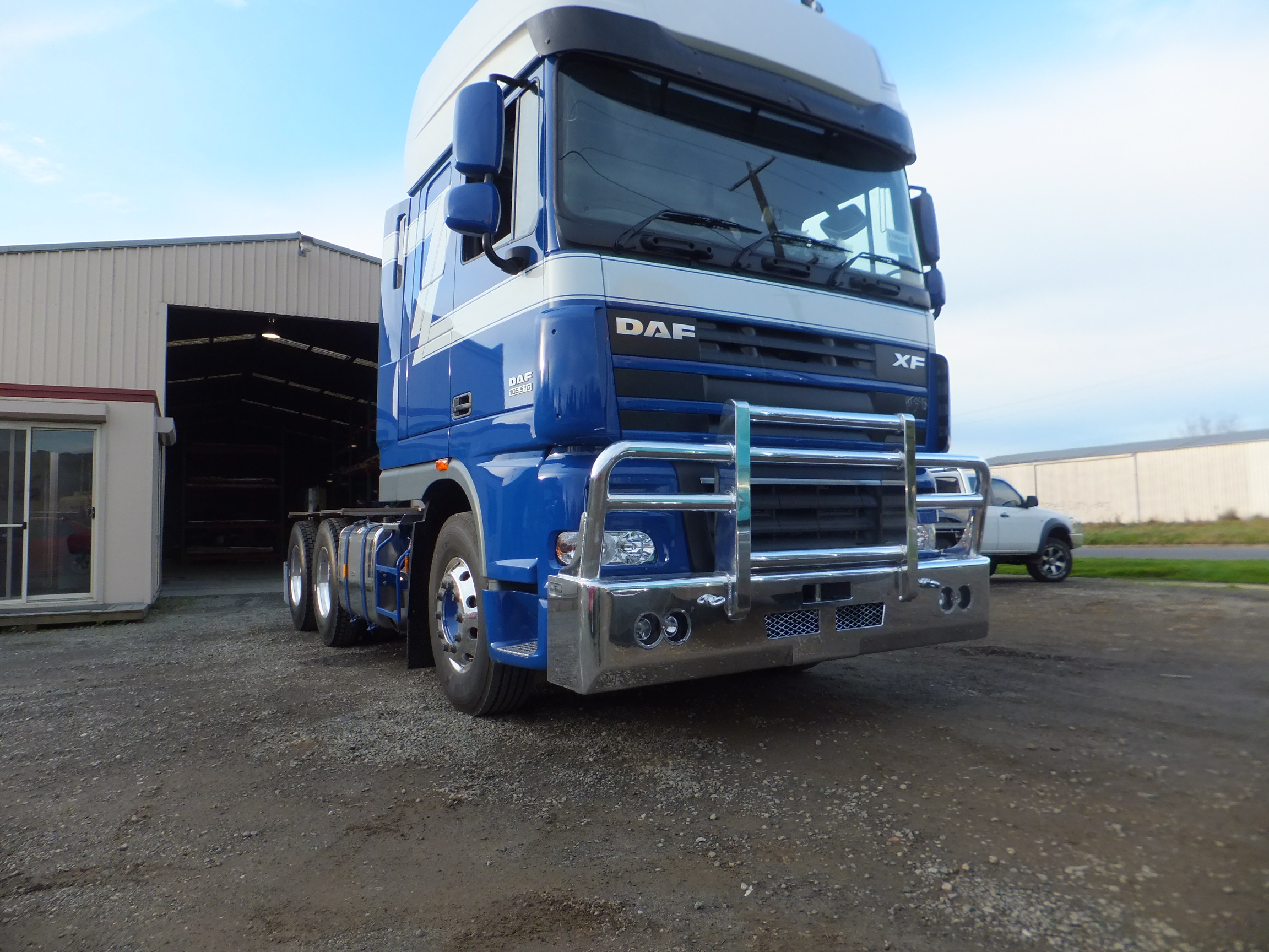 Built for rugged performance and sleek appeal, the AJ’s DAF XF105 Dorset Bullbar is engineered for Australia’s demanding road conditions. Designed specifically for the XF105, it delivers robust front-end protection, straightforward maintenance access, and a refined professional finish. Proudly Australian-made from premium materials, the Dorset brings together durability, practicality and style to keep your rig backed and job-ready.
