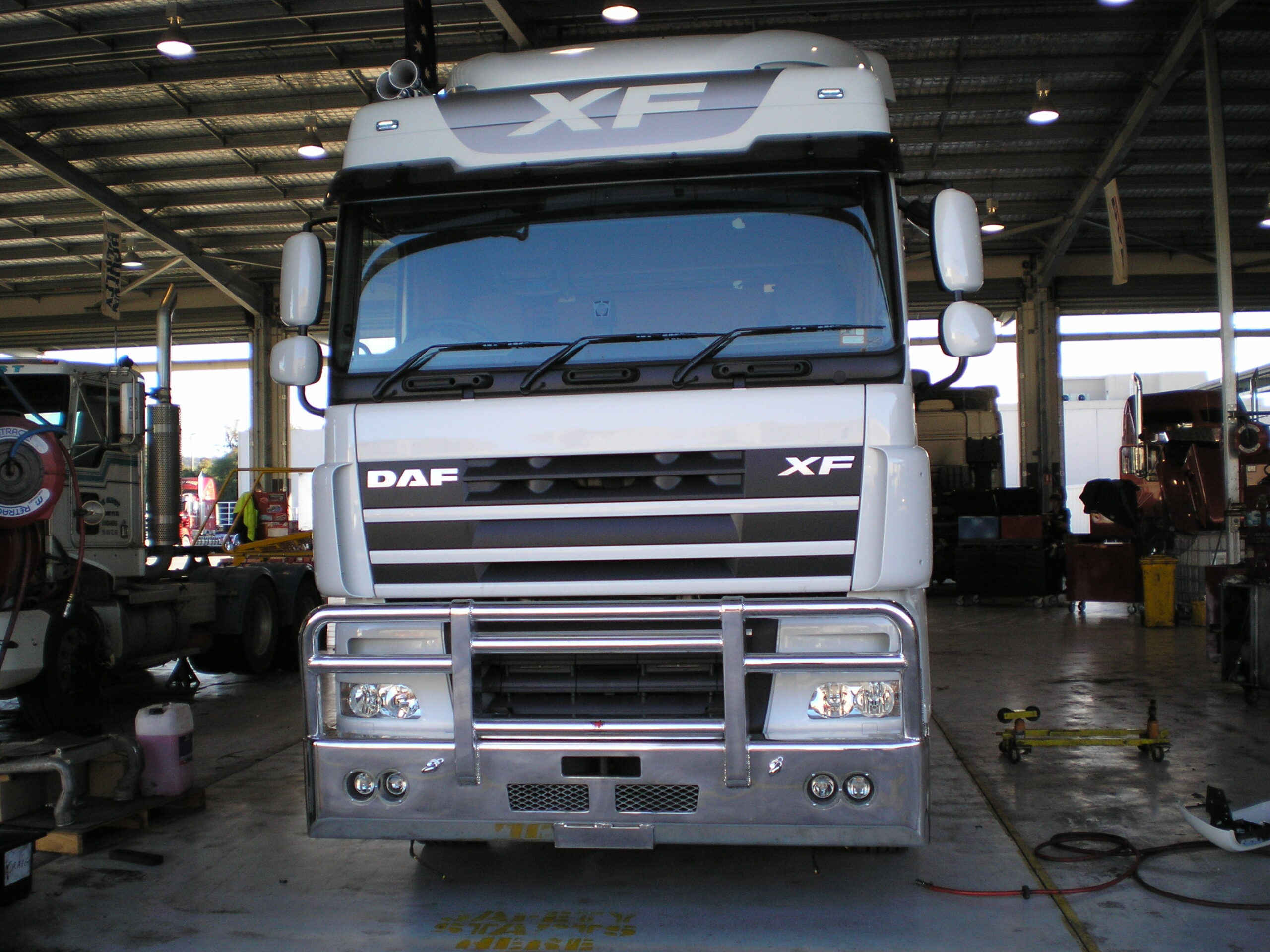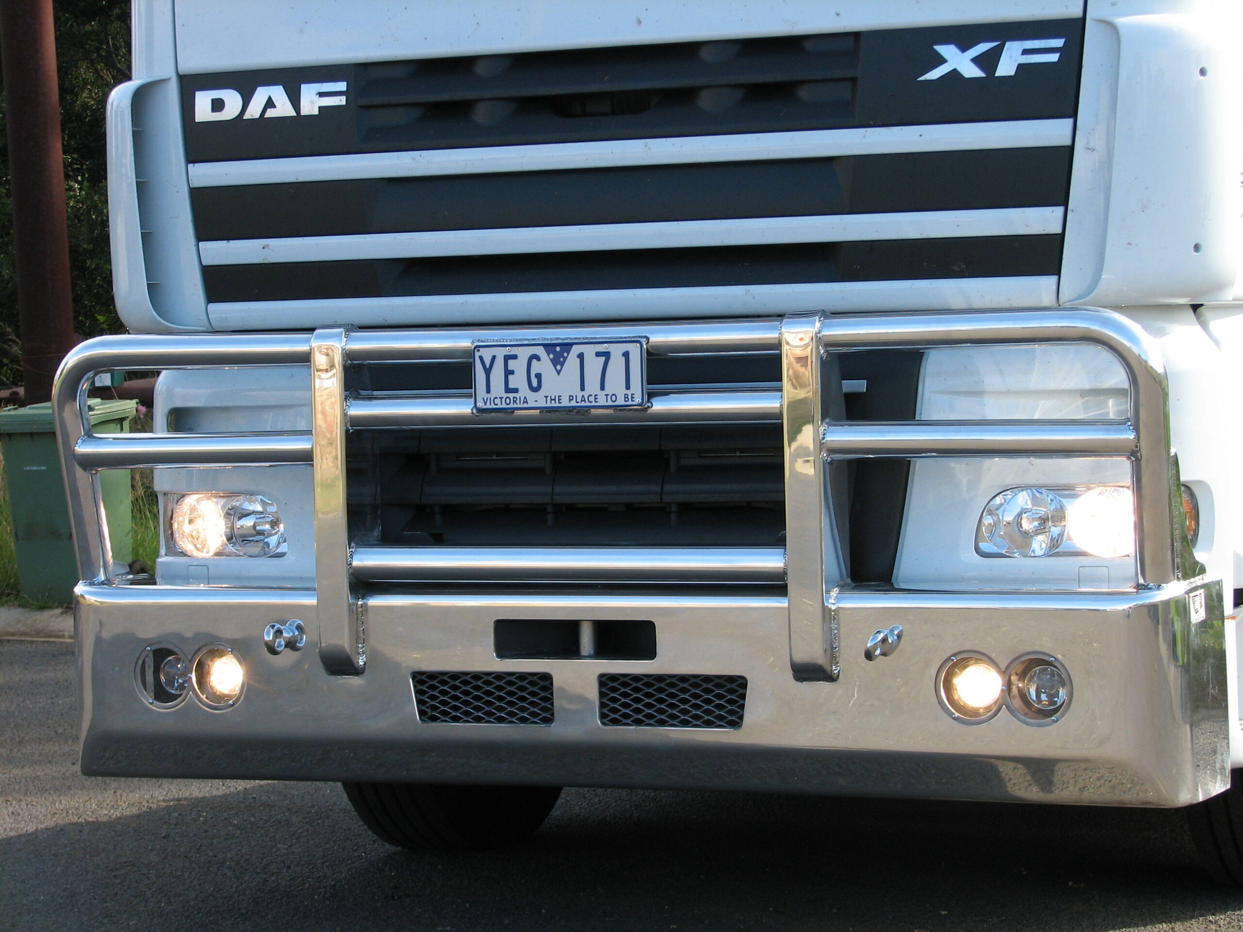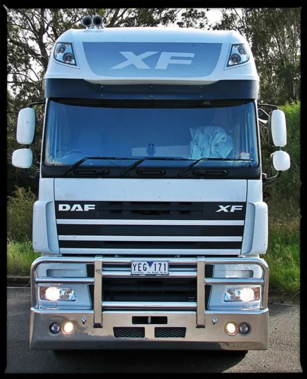 Built for toughness and sharp looks, the AJ’s DAF XF105 Miami Bullbar is crafted for Australia’s rugged roads. Designed for the XF105, it delivers strong front-end protection, straightforward maintenance access, and a clean professional finish. Proudly Australian-made from premium materials, the Miami balances durability, practicality and style to keep your rig safe and ready.